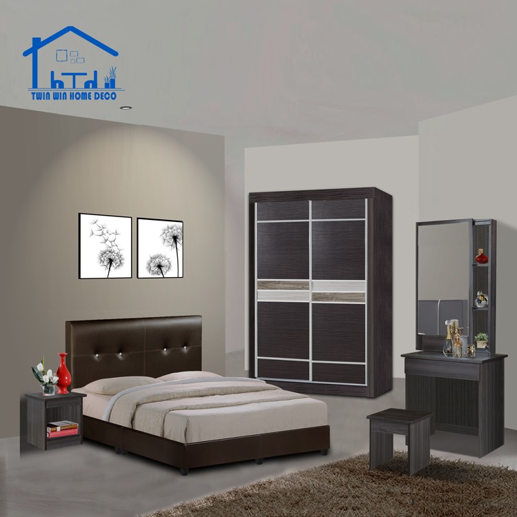King 4 Feet Sliding Bedroom Set 5 Piece Set In 2 Color Set Bilik Tidur Almari Baju Meja Solek Katil King Shopee Malaysia