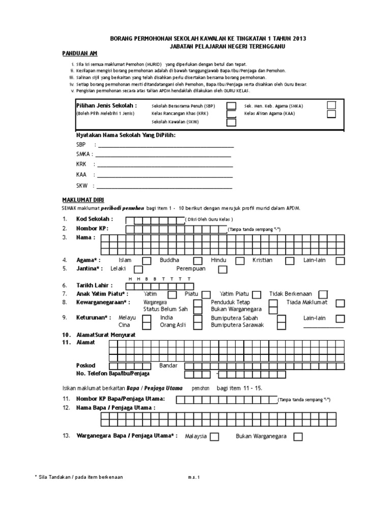 Borang Permohonan Sekolah Kawalan Pdf